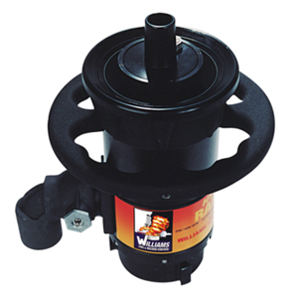 All Ranger Monitor Nozzles feature constant pressure modulation. These nozzles can flow water or water/foam solution generated by various proportioning methods from 250 to 2,000 gpm (946 to 7,571 Lpm) depending on model number. The nozzle tip pressure is automatically maintained at a nominal 100 psi (6.9 bars) ± 10% to assure maximum effective reach of the water/foam solution over the flow range. The self-educting function is not available on these Hydro-Chem nozzles. Pressurized stream of dry chemical such as the siliconized PKW from WILLIAMS FIRE & HAZARD CONTROL is discharged via the built-in 1.5” (F)NPT chemical port through the dry chemical tip on the nozzle. The dry chemical is carried by the water/foam steam to hit the target, overcoming the very limited reach distance of conventional dry chemical equipment. In typical applications, water/foam solution is first used to control the fire followed by dry chemical discharge to extinguish it.